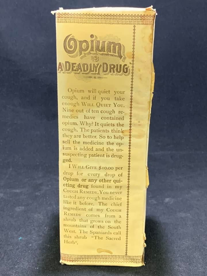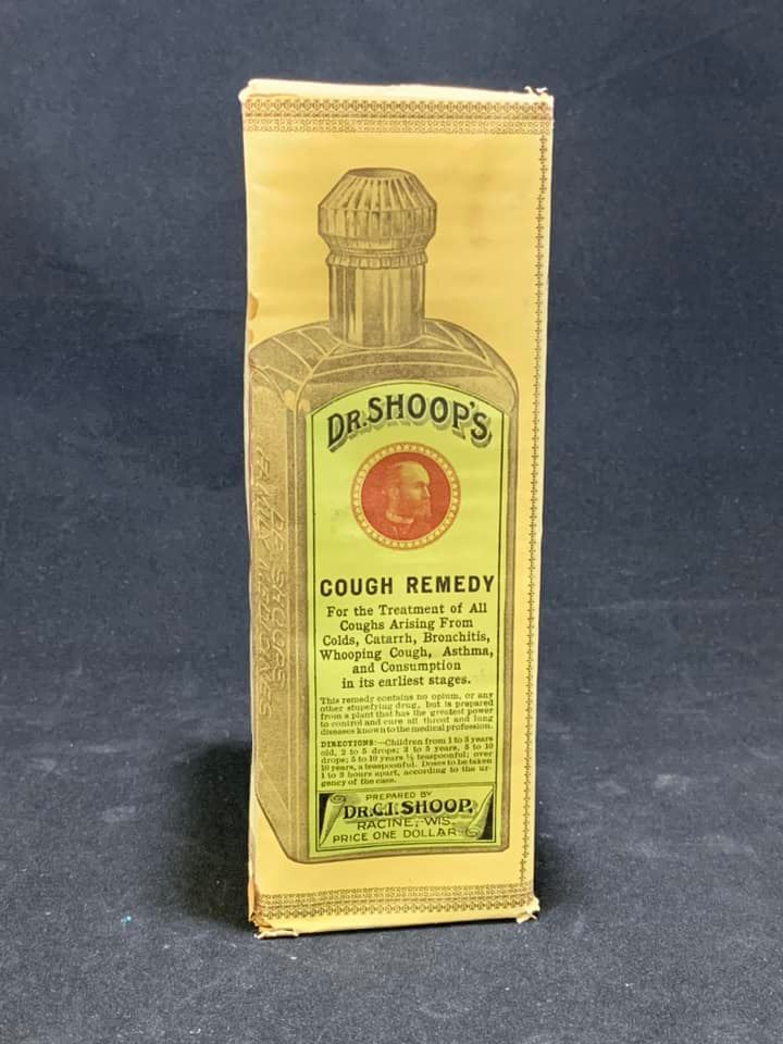 Clarendon I. Shoop, the founder of Dr. Shoop’s Family Medicine Company, first opened his medical practice in Racine, WI in 1883. By 1890, he had established a full line of cure-all “patent” medicines which he sold door to door. His company was incorporated June 30, 1891 and he soon built a six story building to operate from. Medicines like his Cough Remedy were called “patent” medicines, but they were not actually patented. Medicines were sold under this guise to make them seem reliable to consumers while allowing the manufacturer to omit the ingredients list. This particular bottle of Cough Remedy was made sometime after the 1906 Food and Drug Act (the FDA) that made the manufacturing and selling of “adulterated and fraudulent” food and drugs illegal. Before the FDA, Dr. Shoop called it his Cough Cure, but had to start using the word “remedy” instead to stay within government guidelines (surprise, it wasn’t a cure!) Dr. Shoop was so confident in his medicines that he offered to pay for the medical treatment of any person who didn’t feel better after taking his concoctions.